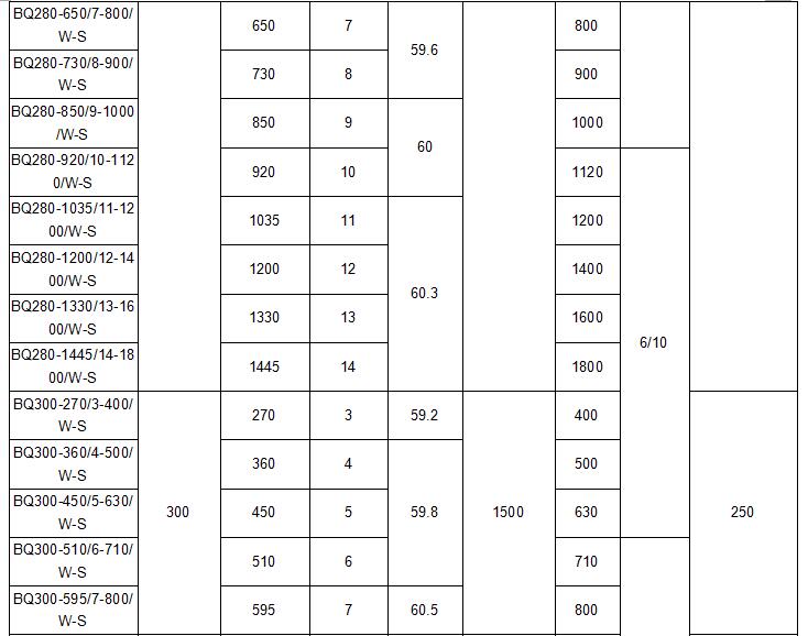 3.流量大、揚(yáng)程高。流量100-1740m3/h,揚(yáng)程85-1500 m,滿足大流量、高揚(yáng)程排水需求。